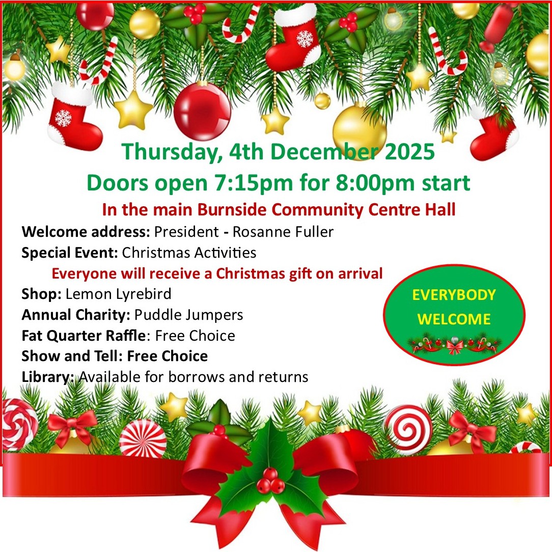 Are held at Burnside Community Centre on the first Thursday of each month from February to December at 7.15pm for 8pm start. Parking onsite with no time restrictions.