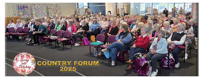 Saturday, 25th October 2025 saw the SA Quilters bi-annual event “Country Forum” once again take place at Adelaide West Uniting Church, Brooklyn Park. 155 ladies from all parts of SA converged for a day of inspiration and fun. The theme for the day was “Spring into Stitching”.